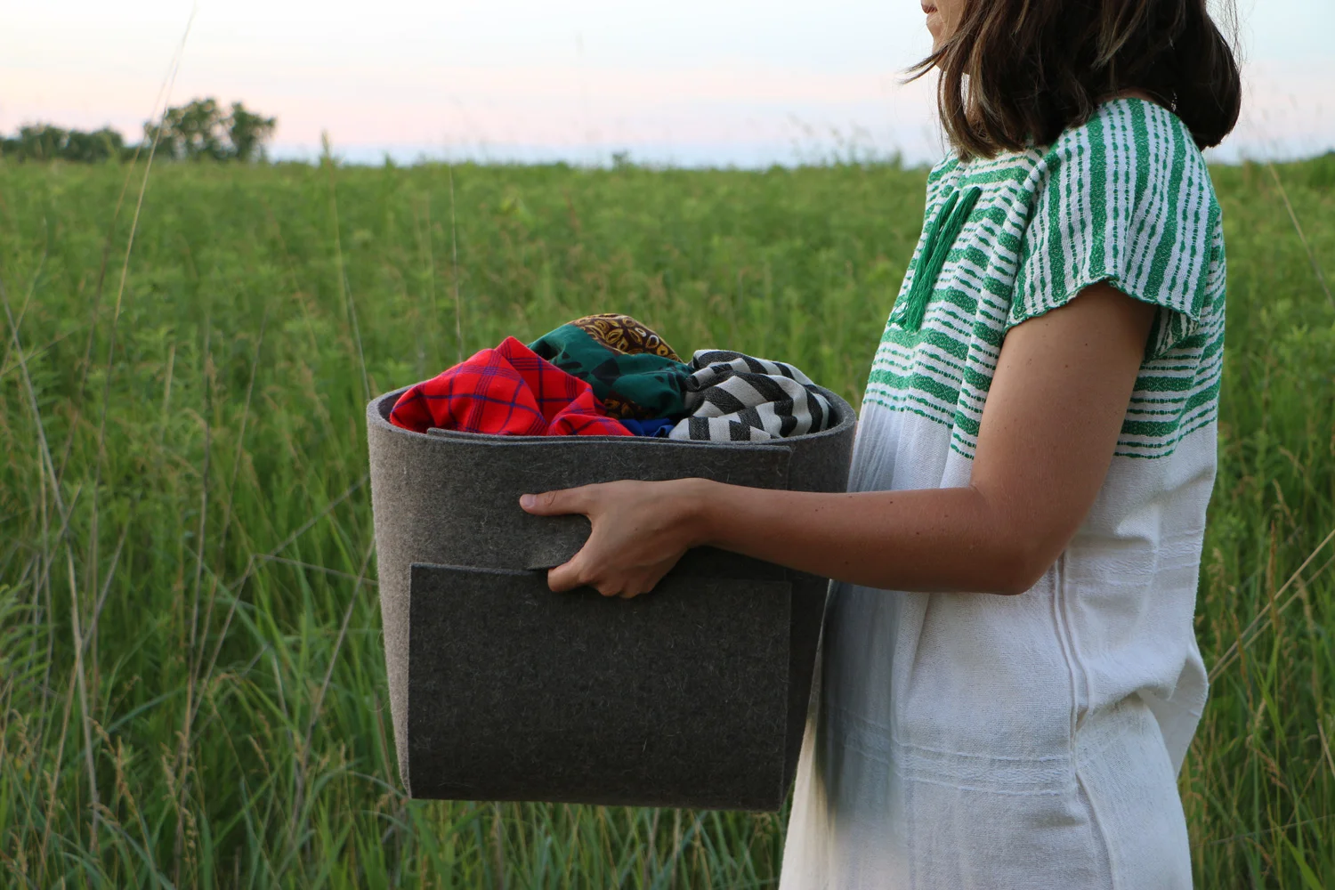 A FELT CONTAINER TO HOLD AND CARRY MOST ANYTHING
